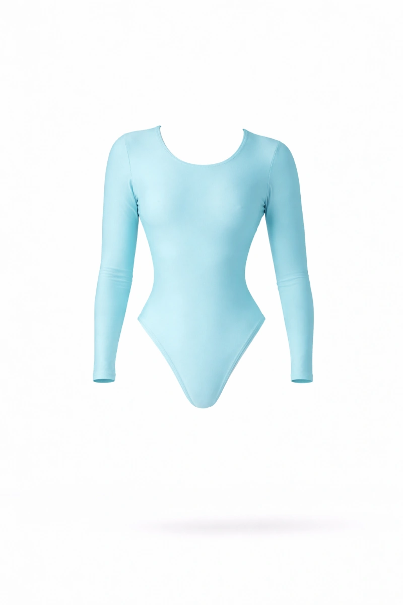 A sleek shiny long-sleeve onepiece designed to move with you, from surfing, diving, to dancing.