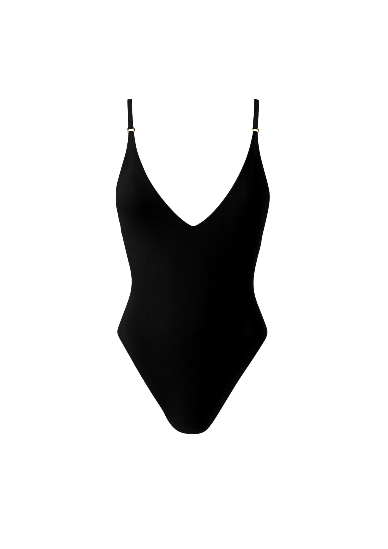 A sleek backless one-piece with a flattering high cut design and adjustable shoulder