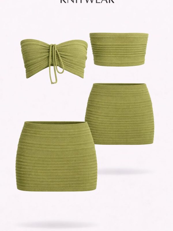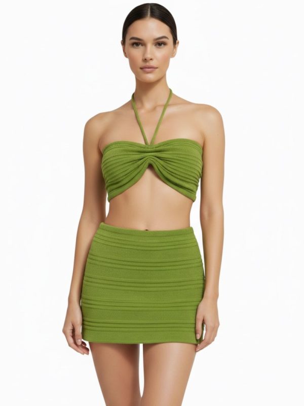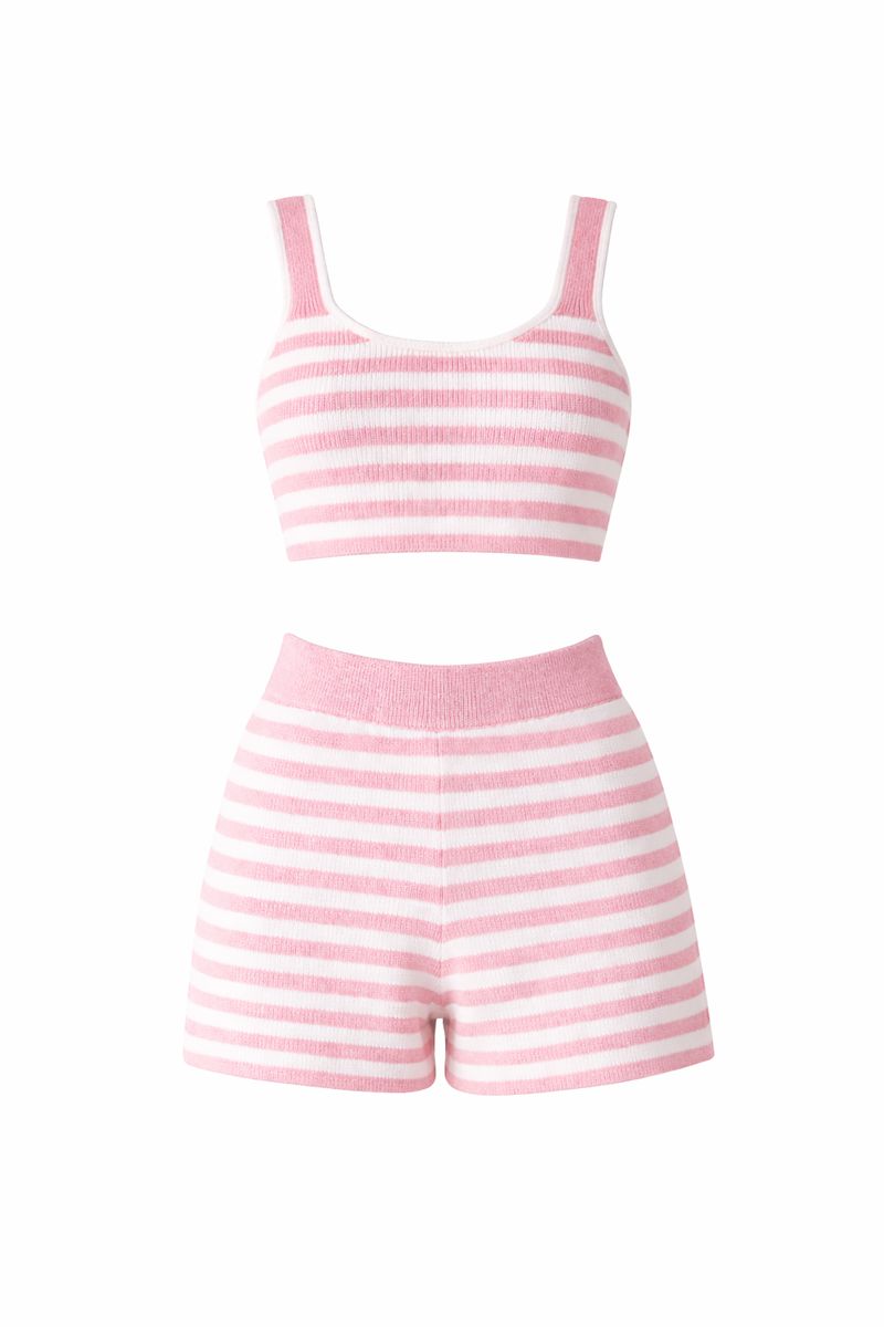 A comfy knit set featuring a cropped tank top and high-waisted shorts, made with a soft stretch